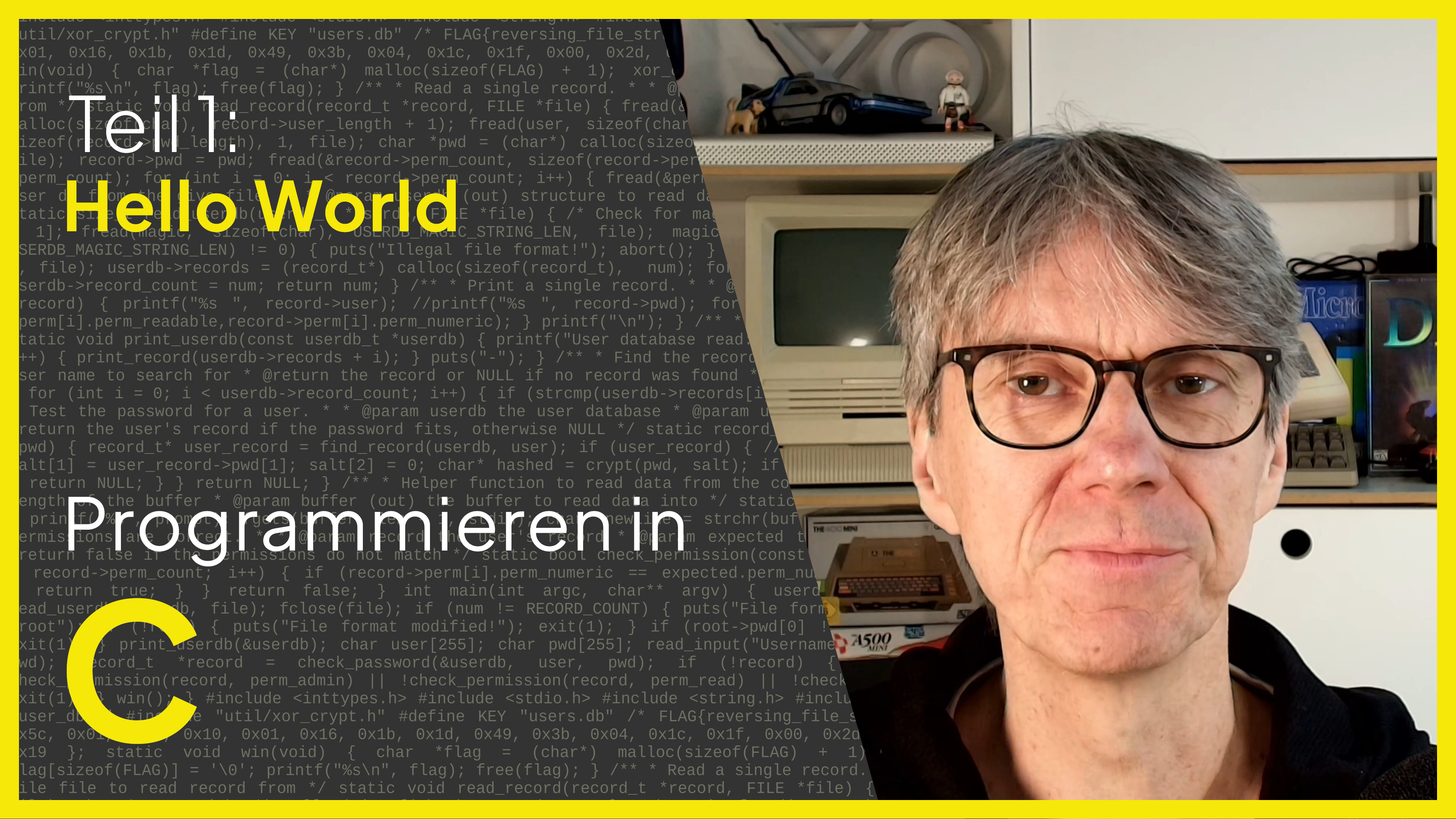 Im Folgenden soll ein erstes C-Programm Schritt für Schritt analysiert werden. Hierzu dient das berühmte „Hello World“-Beispiel.