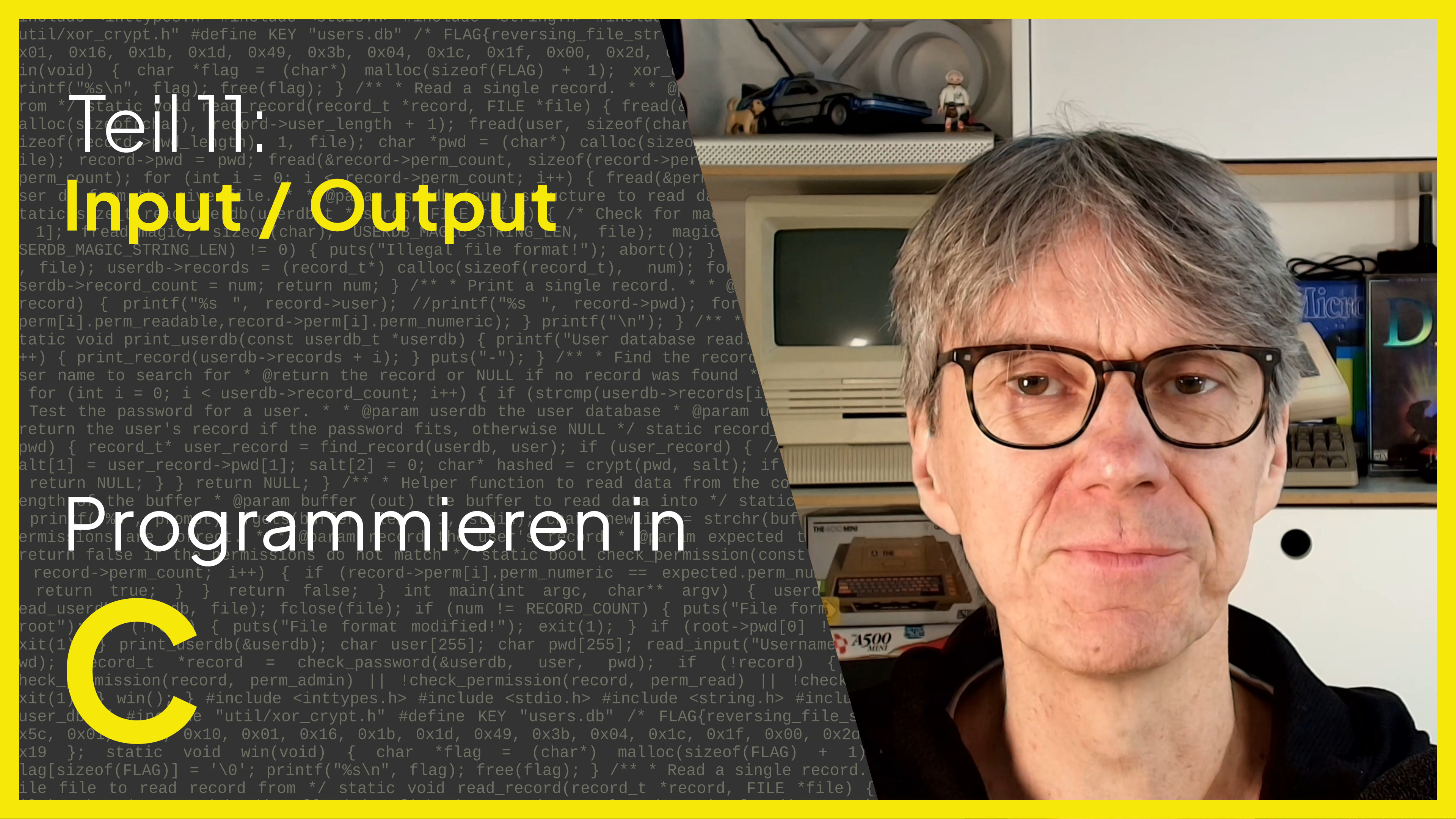 In C sind die Eingabe- und Ausgabeoperationen nicht Teil der Sprache, sondern werden durch eine Bibliothek zur Verfügung gestellt. Da diese Bibliothek im C-Standard definiert wird, sollte sie auf allen Plattformen und bei allen C-Compilern zur Verfügung stehen. Ausnahmen sind eingebettete Systeme, die kein Input/Output unterstützen.