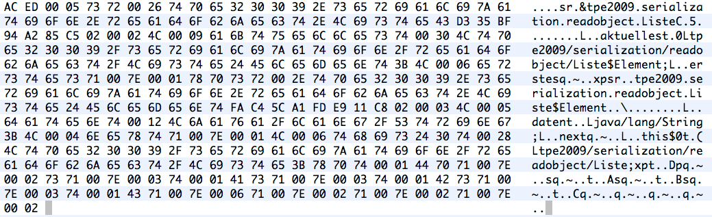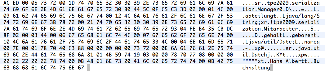 - Lesen von Objekten (Deserialisierung)- Serialisierung ist relativ robust gegen Änderungen an den Objekten, sodass serialisierte Objekte auch nach Änderung an der Klasse (häufig) noch deserialisiert werden können
